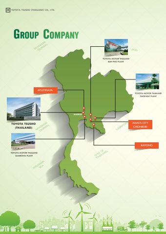 BANGKOKTOYOTA TSUSHO (THAILAND) TOYOTA TSUSHO THAI HOLDINGSAMATA CITY CHONBURIAYUTTHAYAPINTHONGGATEWAYEASTERN SEABOARDSAMRONGWELLGROWBAN PHOTHAY HINO Truck DealerTTTC Amata Nakorn BranchTTKL LogisticsTTFTS Cutting ToolsTTMET Machine PartsTTFL ForkliftGIFU GIFUSEKI Die MoldsSLT LogisticsTTAST SlitterGMTH Metal RecyclingTTT Vehicle TransportationTTKA Transport & TPRO Training CenterTTKL LogisticsTTAT Tire AssemblyTTTC Eastern Seaboard BranchTTTP Accounting ServiceTTMET Machine PartsTTLIB Life InsuranceTTKL LogisticsTTKL LogisticsTTAST BlankingGMTH Metal RecyclingTTMT Vehicle TransportationTTAT Tire AssemblyTHAPT Aluminum ProcessingTYOT Optical Molded PartsTTAT Tire AssemblyTTMT Vehicle TransportationTTTC Toyota Tsusho (Thailand) Head OfficeTTIB InsuranceTTLIB Life InsuranceTTMWM MedicalTTEN Trading Energy and Petroleum productsLIBRA Car DealerTCPT Chemical ProductsTTLS Logistics Service ProviderTTMT Drivers Dispatch ServiceTTMET Machine PartsBTL Automotive PartsNETH SoftwareTLCT Lifestyle & ConsumerTTTP BranchTTAST Sales officeTTS-T IT NetworkAMATA CITYCHONBURIAYUTTHAYARAYONGTOYOTA MOTOR THAILANDSAMRONG PLANTTOYOTA TSUSHO(THAILAND)TOYOTA MOTOR THAILANDGATEWAY PLANTTOYOTA MOTOR THAILANDBAN PHO PLANTGROUP COMPANYBANGKOK28 TOYOTA TSUSHO (THAILAND) CO., LTD.
